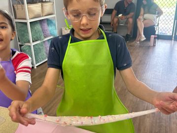 Get ready to mix, squish, stretch and giggle at our wildly popular Slime Parties! Each guest creates their very own colourful, gooey slime masterpieces to take home—glow-in-the-dark, glittery, crunchy, or fluffy... we’ve got it all!