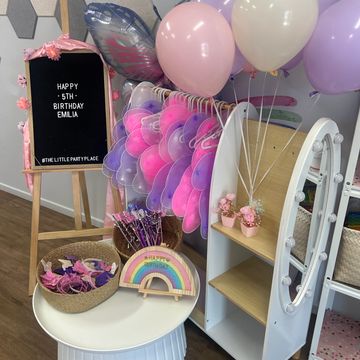 We set up our Party space prior to your arrival using backdrops, balloons, lights, tablecloths and a range of colours/themes.